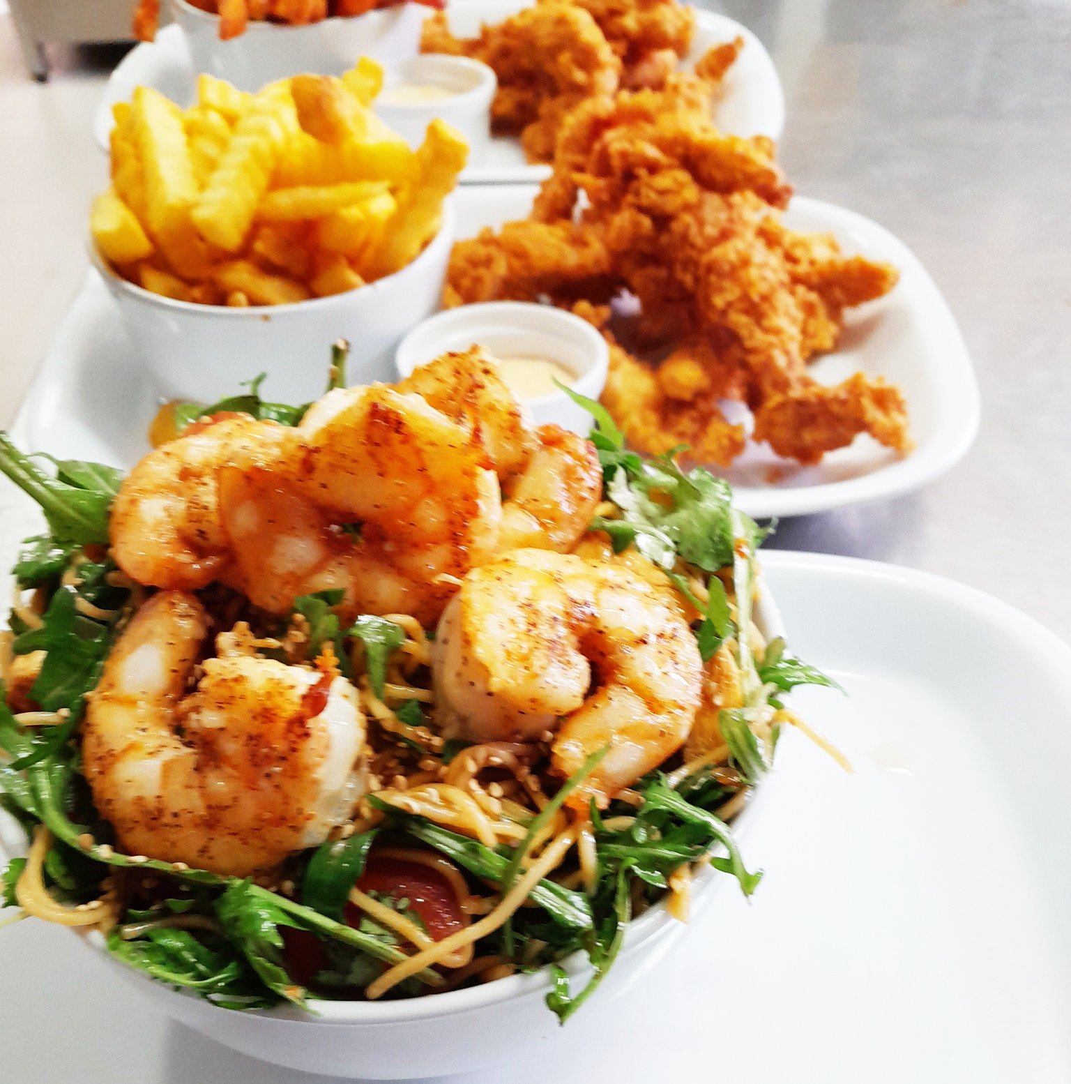 🇬🇧 Noodles, rocket, tomato, spring onion, coriander, and sesame Thai dressing.
